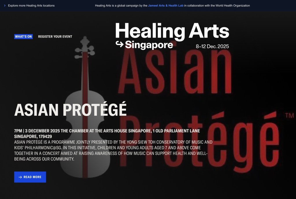 Asian Protégé is honoured to support Healing Arts Singapore (HASG), which “aims to embed the arts within systems of care, advancing evidence-based and scalable interventions to improve wellbeing across Singapore and the wider Western Pacific region.